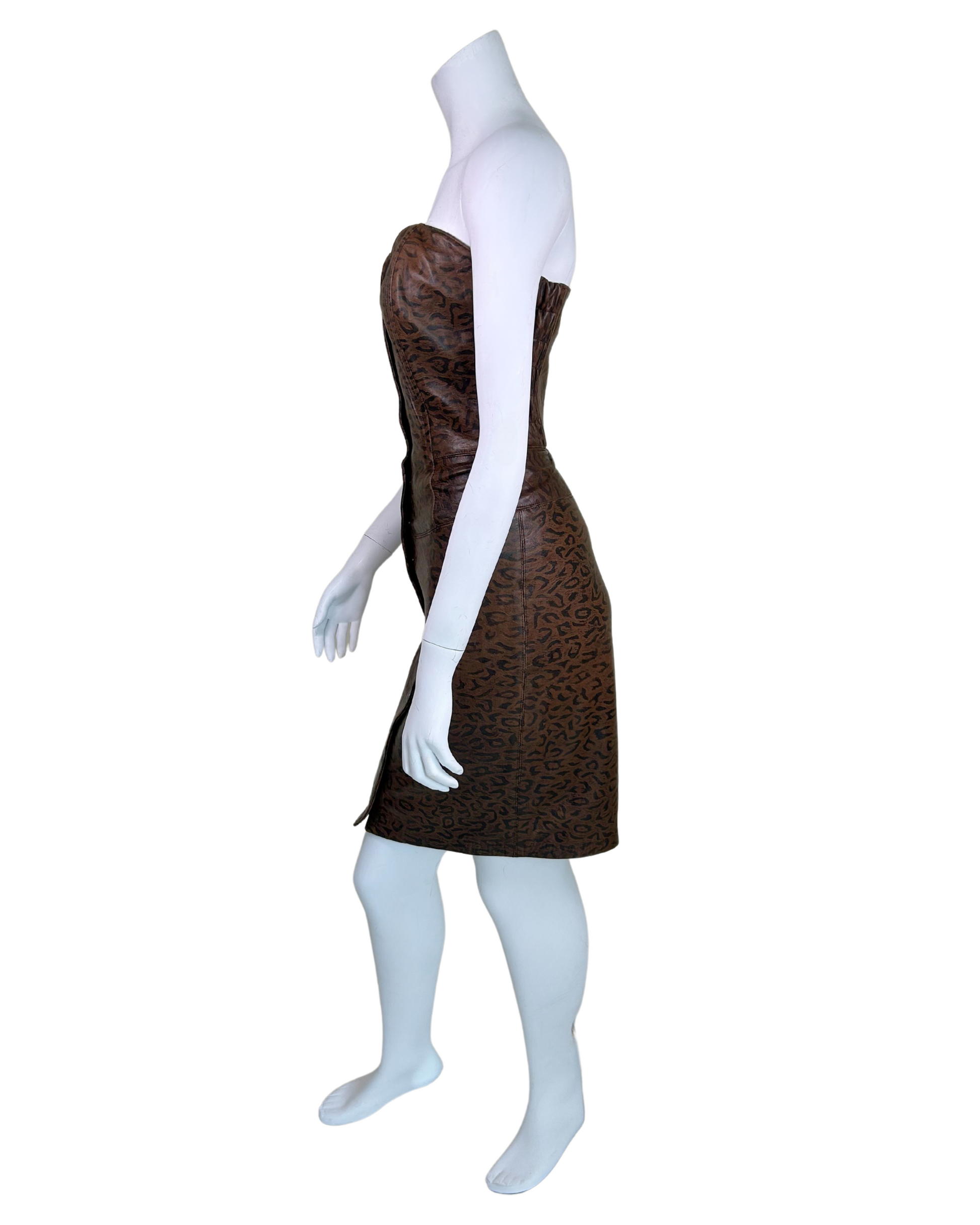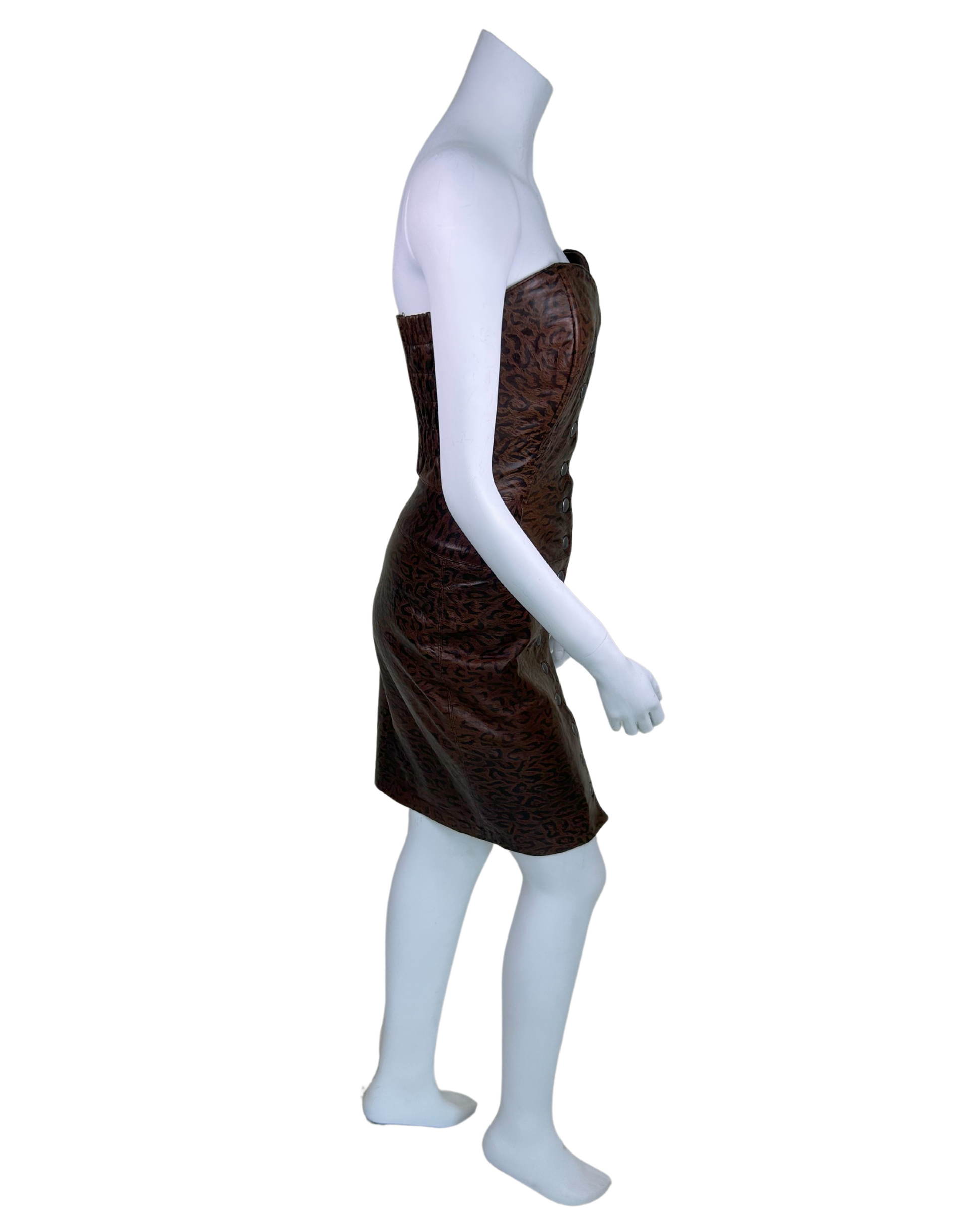 Vintage 80s Michael Hoban for North Beach Leather Animal Print Bustier Dress