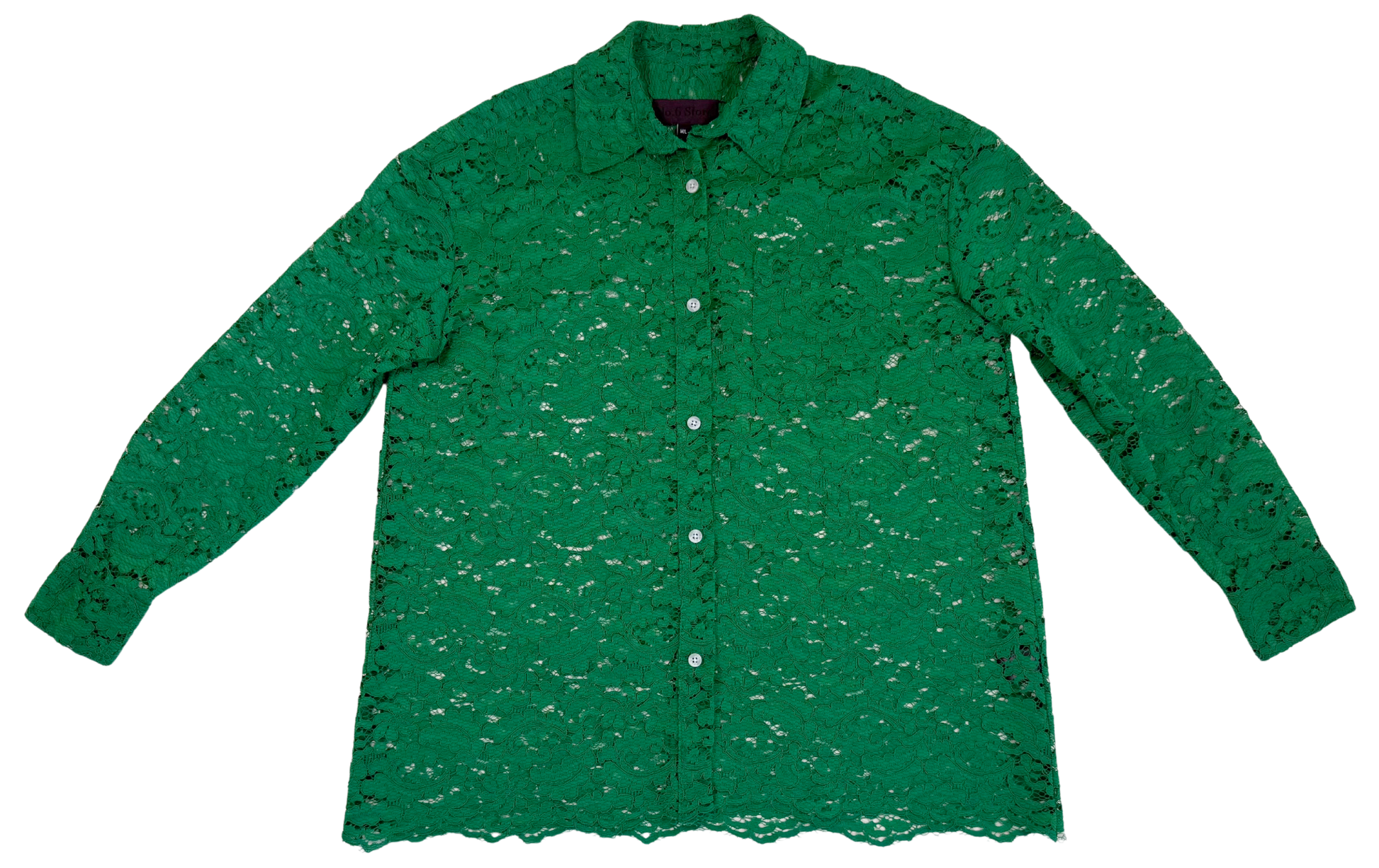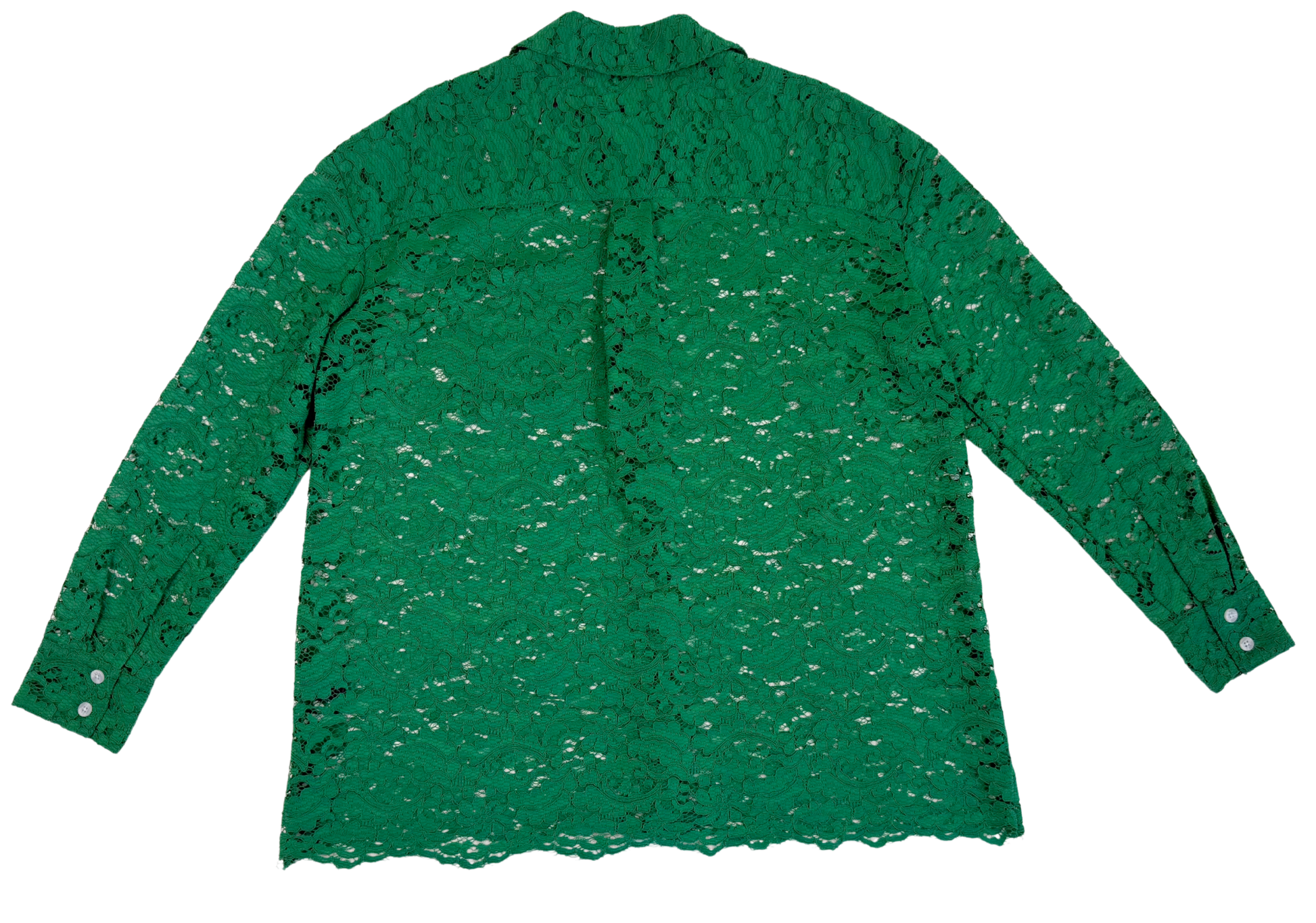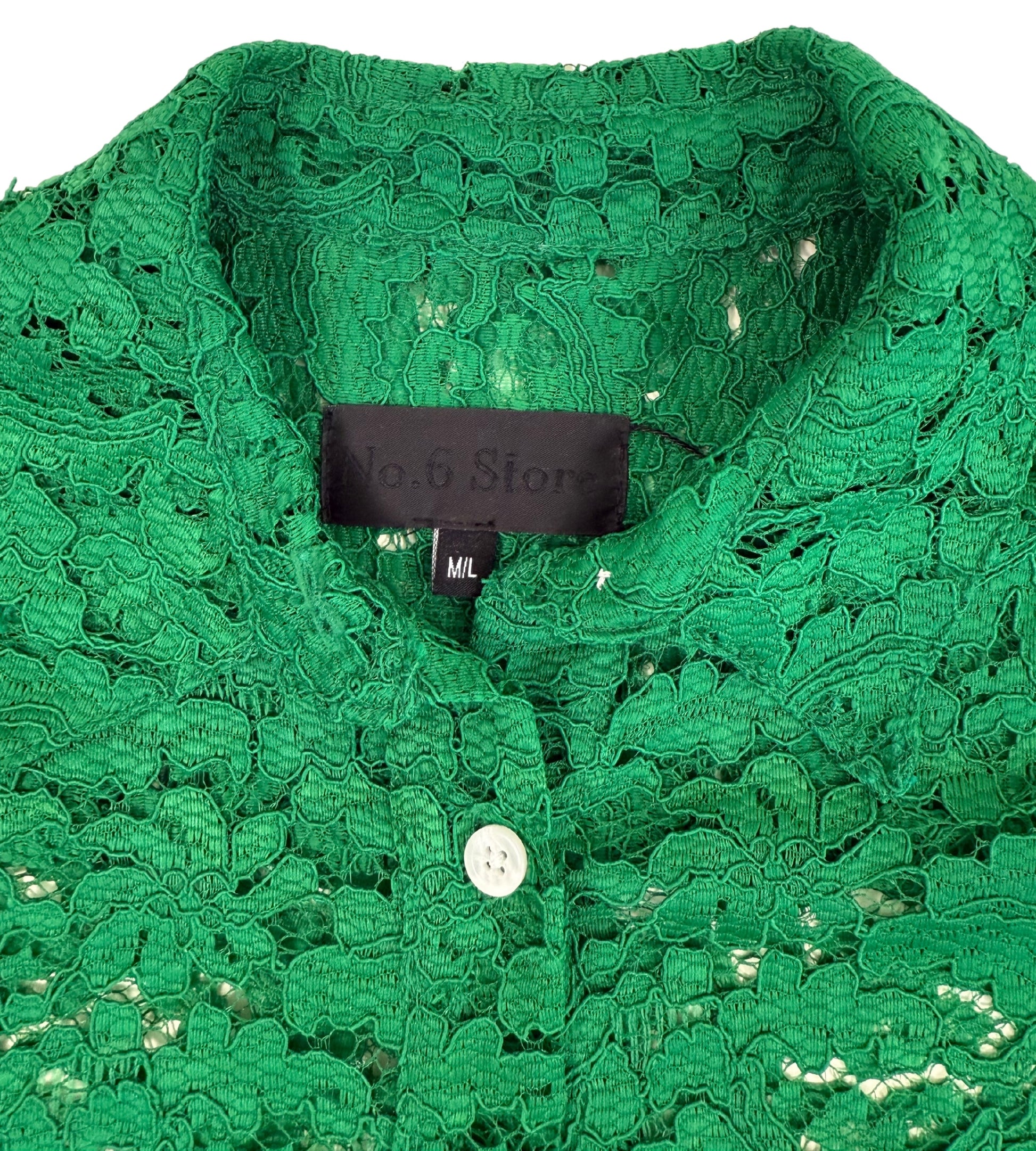 No. 6 Store Emerald Green Lace Button-Up Blouse