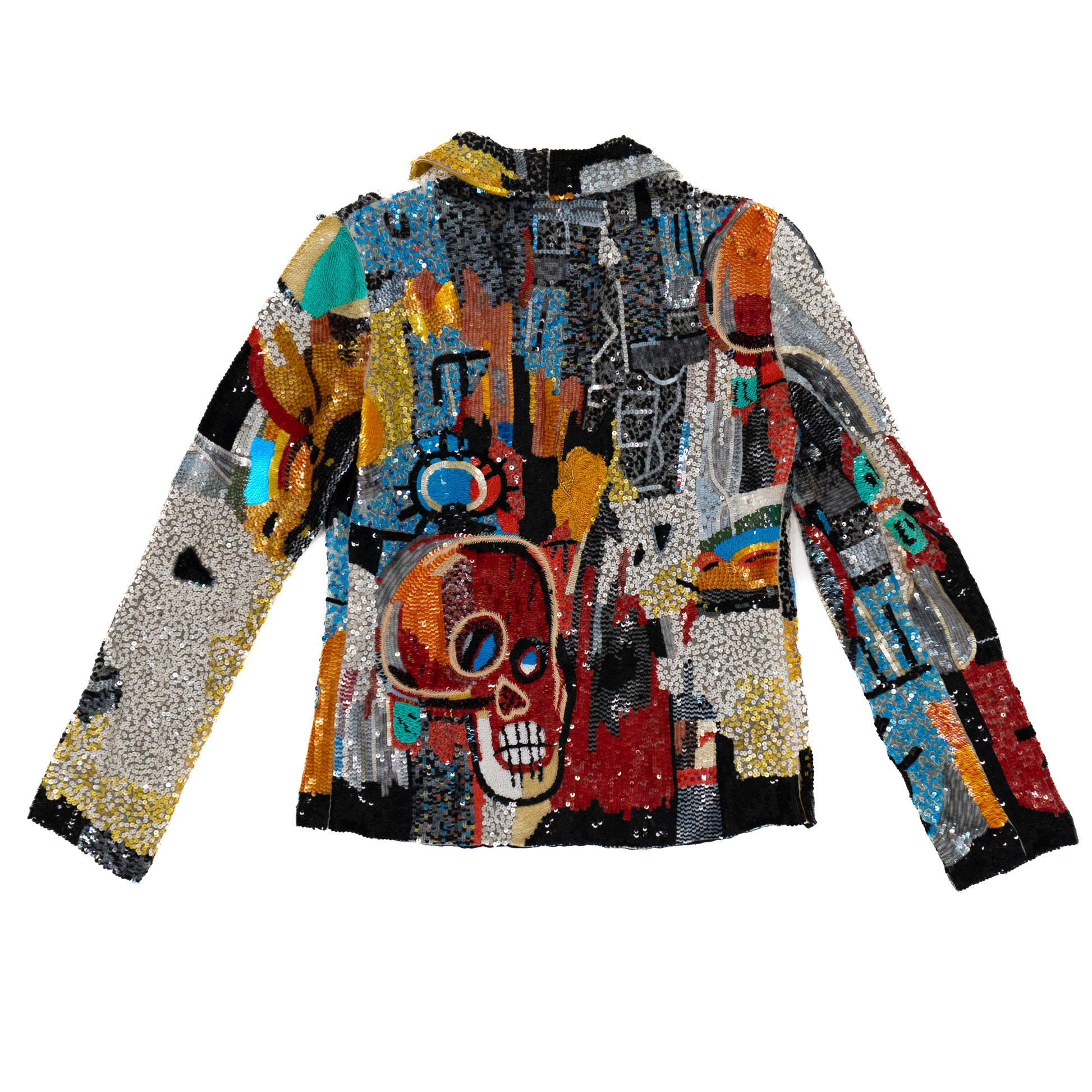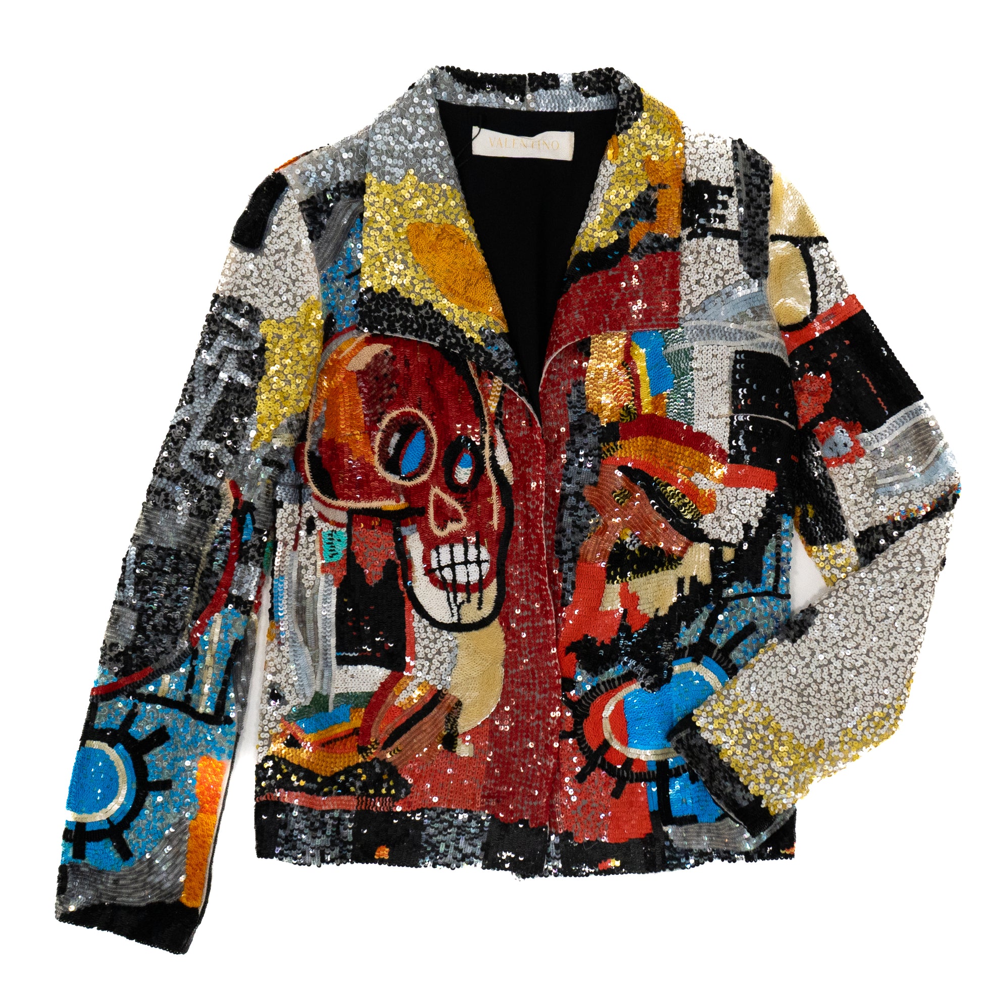 Valentino 2005 Jean Michel Basquiat Silk Sequin Printed Blazer