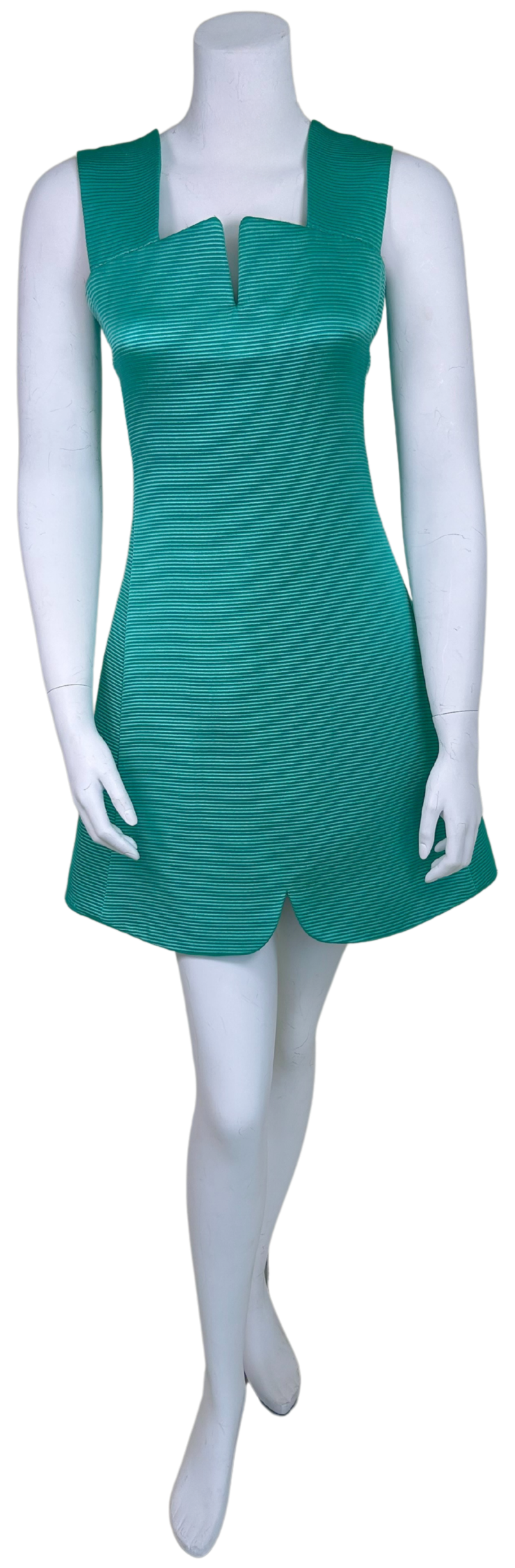 Vintage 1990s Gianni Versace Couture Ribbed Teal Mini Dress