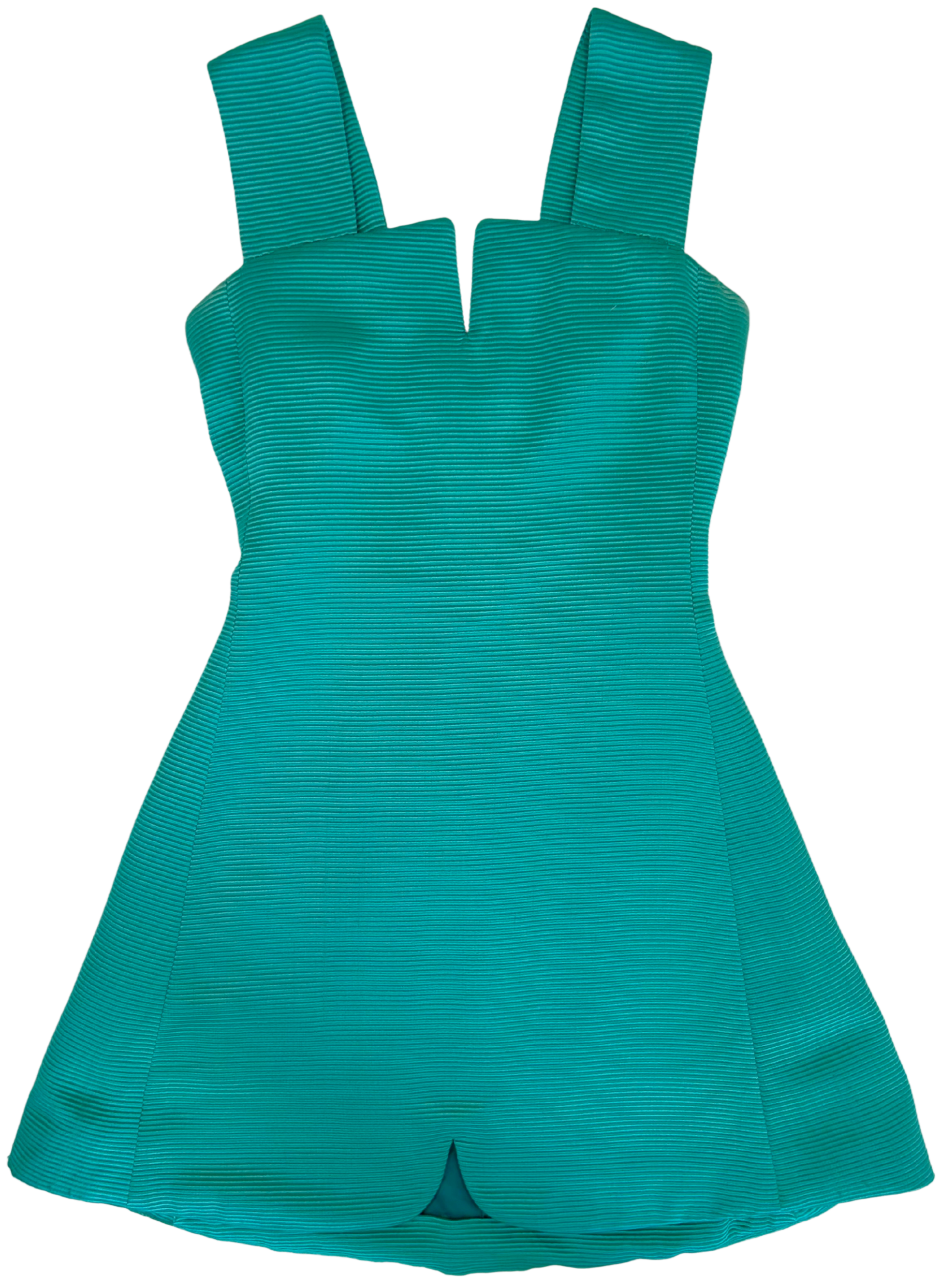 Step into iconic ‘90s elegance with this striking vintage Gianni Versace Couture mini dress. Expertly crafted in Italy, this vibrant teal dress is tailored from a structured wool and silk blend with a ribbed texture that gives it architectural dimension and fluidity. The design features wide sculptural straps, a notched square neckline, and a subtly flared A-line silhouette, punctuated by a petite front slit for added edge. Fully lined in tonal cupro and finished with a concealed rear zipper, this piece exemplifies Versace’s mastery of bold, body-conscious tailoring from his golden era.