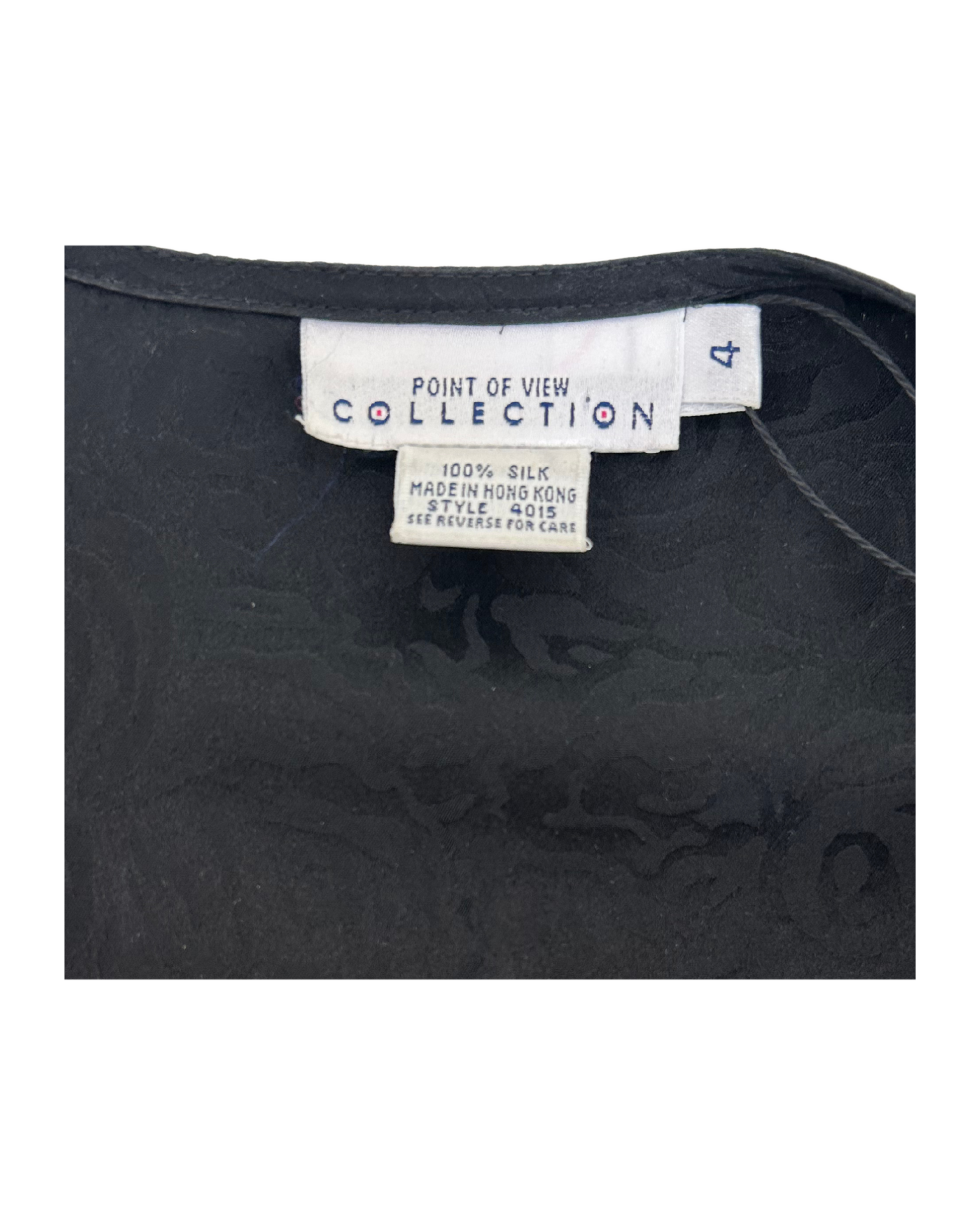 Vintage 1990s Point of View Collection Black Silk Jacquard Dress