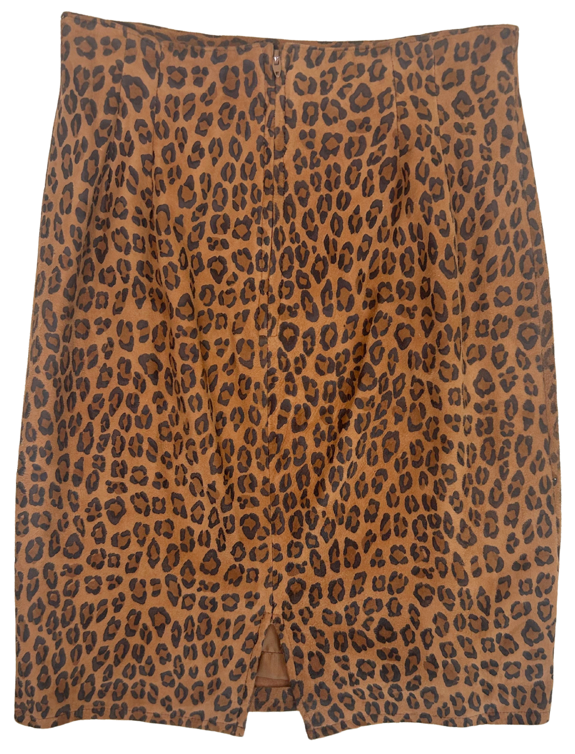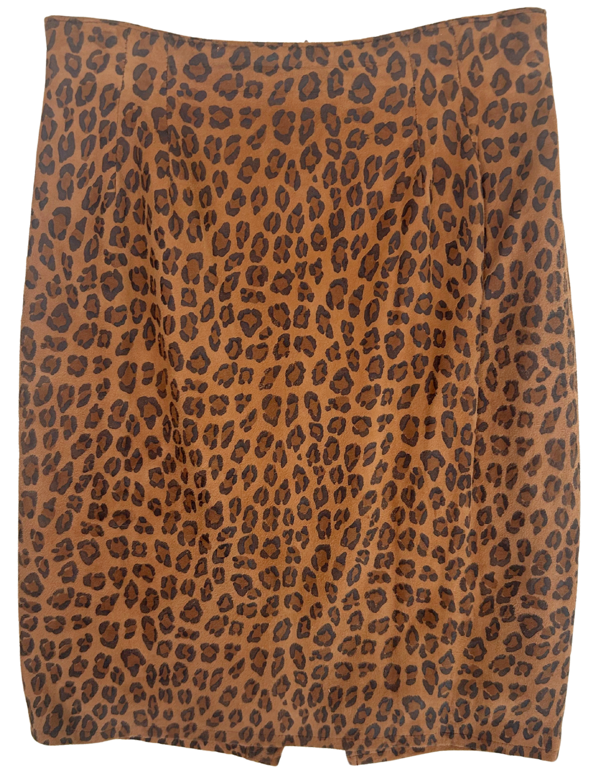 Vintage 80s Vakko Leopard Print Suede Two-Piece Skirt and Top Set