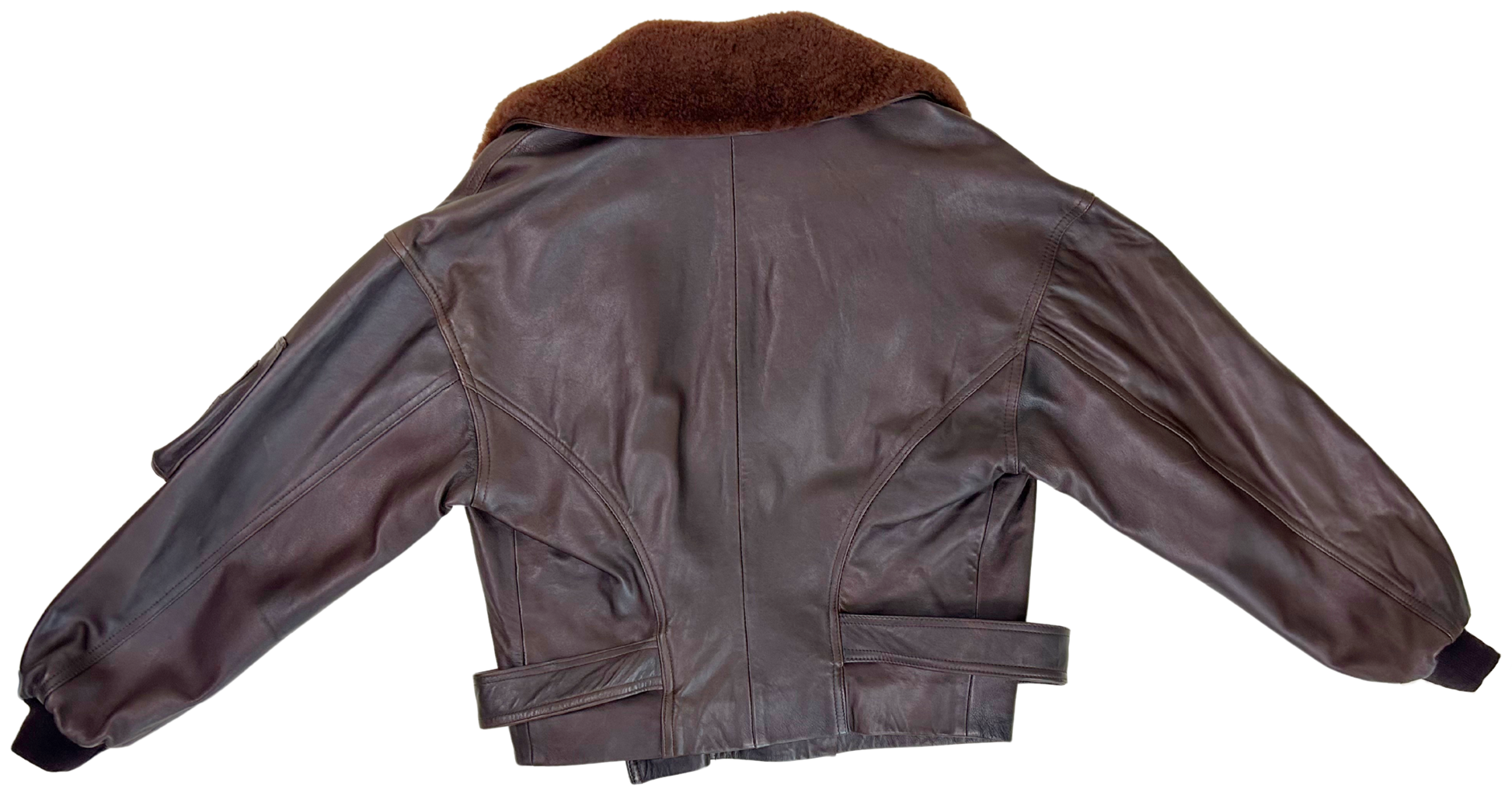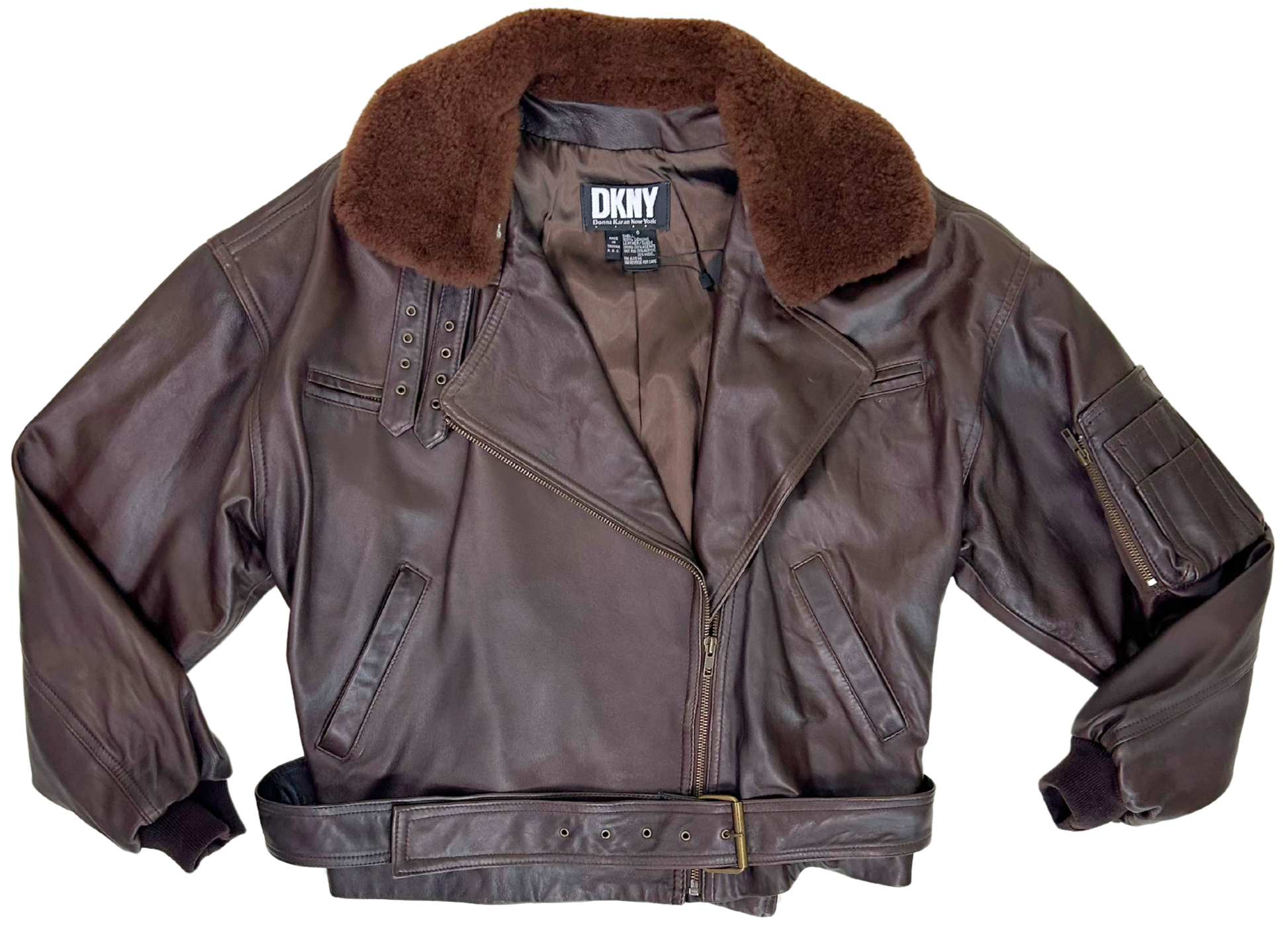 Vintage DKNY Brown Leather Aviator Jacket with Faux Shearling Collar – 1980s/90s