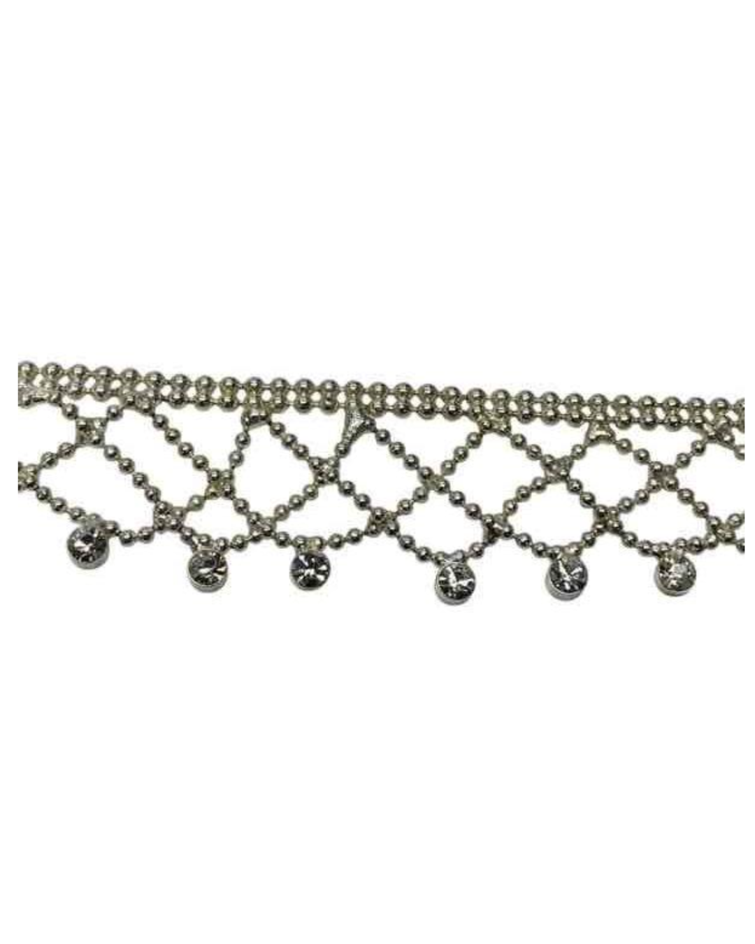 Delicate but still unmistakably couture, this vintage 1990s Givenchy choker features an intricate silver-tone beaded lattice (net) chain design, finished with tiny crystal drop beads along the lower edge for a refined, almost jewel-lace effect. The necklace sits as a true collar and is finished with an adjustable extender chain and round GIVENCHY logo charm.