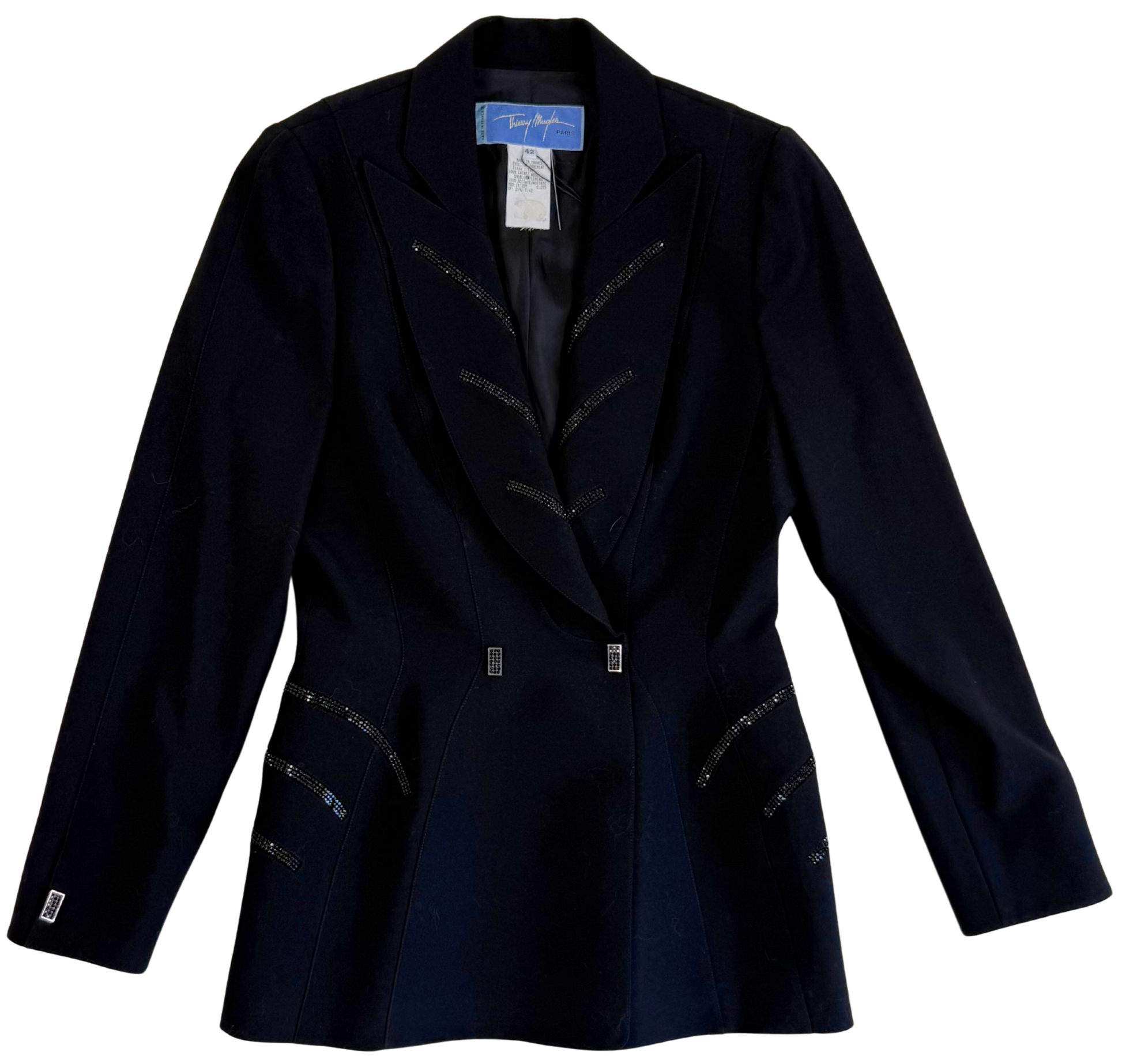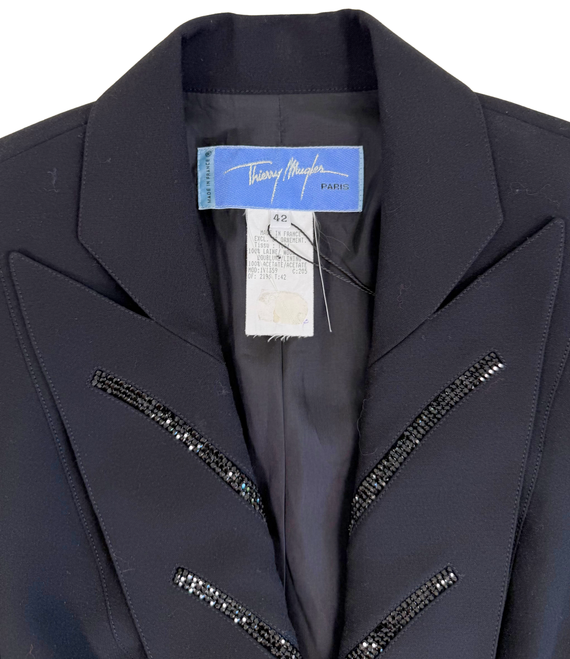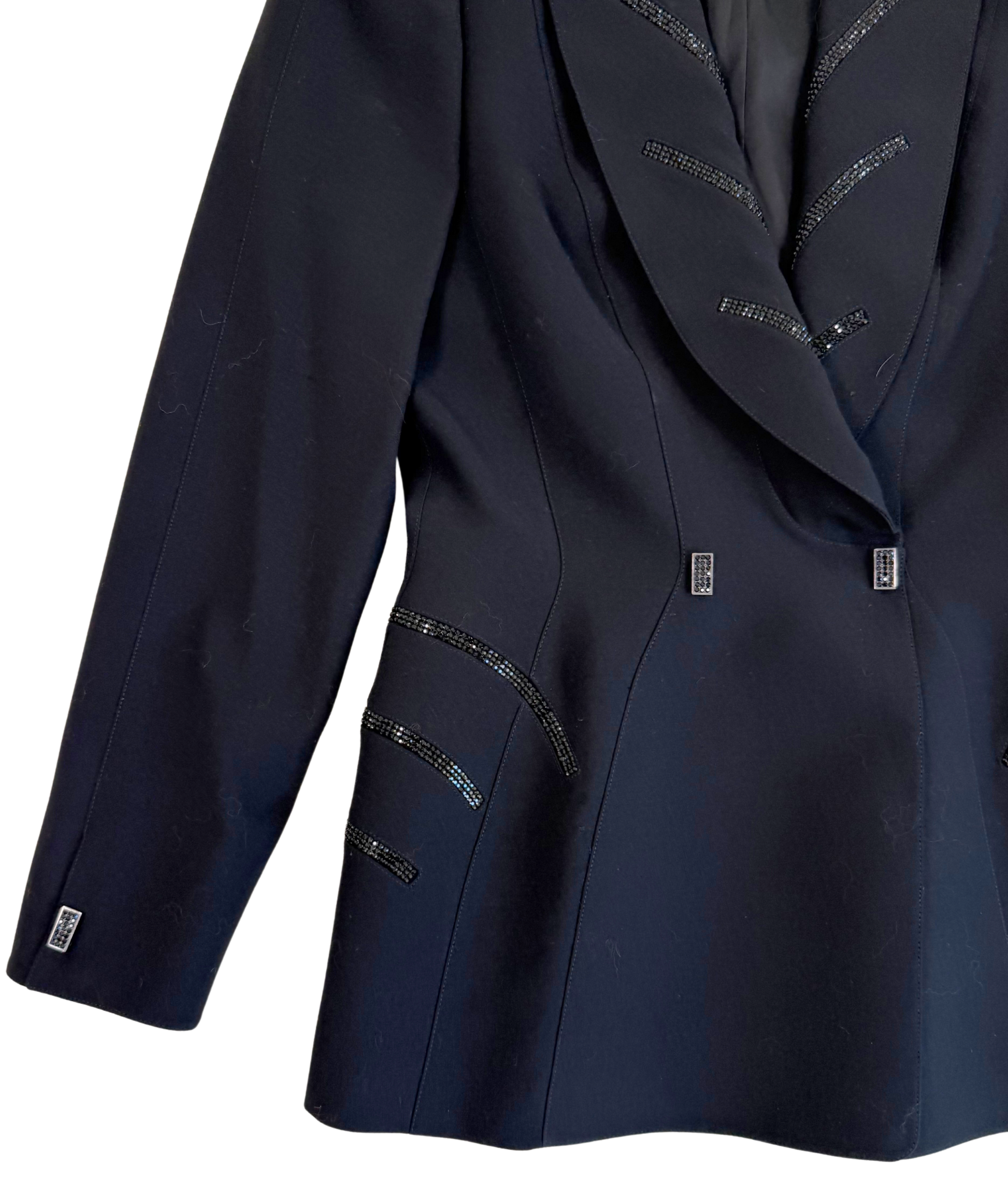 Vintage Thierry Mugler F/W 1988 Black Sculptural Crystal-Embellished Blazer
