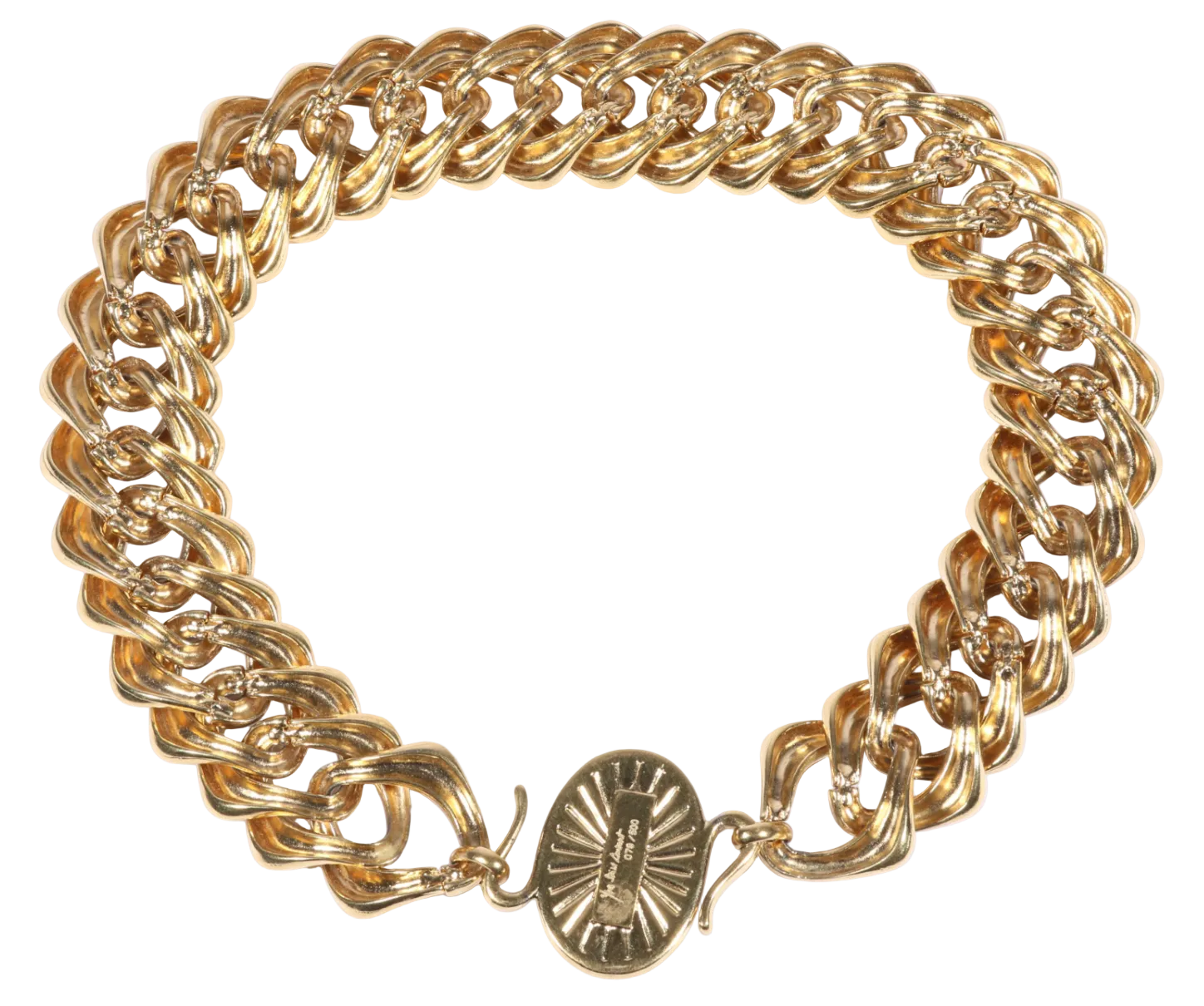 Crafted in the signature Goossens style—known for marrying haute couture sensibility with artisanal metalwork—this necklace embodies the powerful, statement jewelry aesthetic synonymous with vintage YSL.